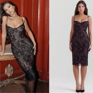 HOUSE OF CB 'Escala' Black Lace Midi Dress