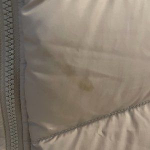 Elevate your winter wardrobe with this chic women's off-white/cream Nike down-filled puffer vest. Crafted for both style and warmth, it features stylish oversized zippers and flannel-lined pockets, adding a cozy touch to your ensemble. The interior drawstrings offer versatility, allowing you to adjust for a loose or fitted waistline, ensuring a flattering silhouette. Branded with Nike's signature "The Athletic Department" label, this size medium vest exudes sporty sophistication. While it may be missing its hood, its 550 puffer down filling promises exceptional insulation against the cold. Functional details include zipper hand pockets for convenience and an interior zipped pocket for secure storage. Whether layered over a sweater for a casual day out or paired with your favorite athleisure look, this Nike vest is a must-have addition to your winter collection. Please note there is a small stain on the front near the zipper (pictured), however, it's likely a drycleaner could remove it.