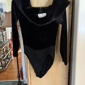 Black velvet faux collar body suit large