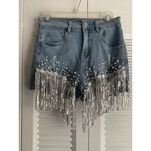 Cute short stretchy short shorts with lots of bling and pearls🤩 all jewels are very secure in place. These give much stretch 😊