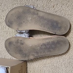 Cork look. Normal wear. I could find no missing stones. Comes with extra stones. They BLING in the sunlight!