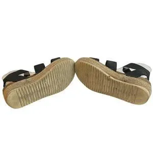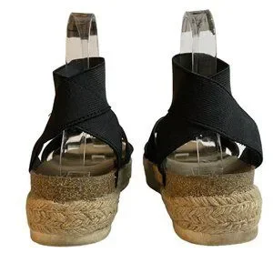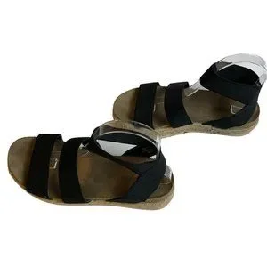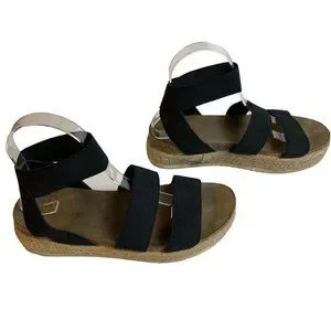 Cushionaire Mandy Flatform Sandals Size 7.5 M Cork Foot bed Espadrille Roping Black Webbed Straps 1.10 oz