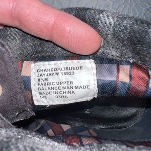 White Mountain Jay Jay Charcoal Gray leather suede with gray and black plaid roll down cuff. 3” distressed heel. Womens size 8.5M