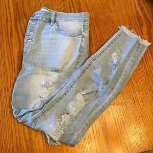 Size 15 Distressed Light wash Button fly Skinny jeans