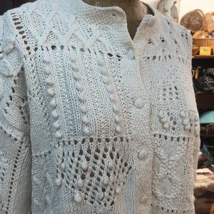 Vintage 80’s90’s- Cape Isle Knitters- chunky knit, cotton Ramie cardigan - M