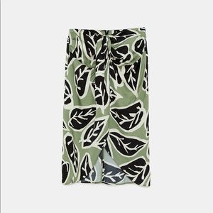 Zara Green Leaf Print Midi Skirt Pencil Faux Wrap High Waist XS