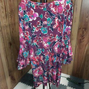 Roz & Ali Dark purple floral with bell sleeves and keyhole at neckline