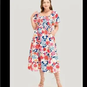 BloomChic floral Backless Square neck Midi Dress Plus Size 22-24