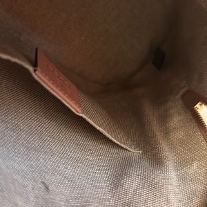 No Call outs on otter surfaces , normal wear inside bag.This bag is gorgeous it’s considered vintage but so adorable. Pink with Wheat Colored cloth inside with pocket for cards etc. Comes with adjustable removable strap. With gold trimmings and gold zipper.
