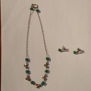 Silver and tourquoise choker style necklace and matching earrings, choker 14"