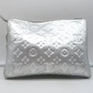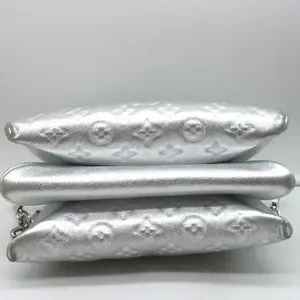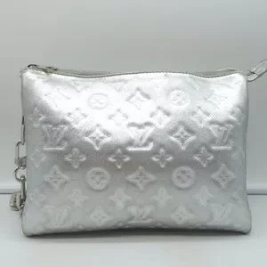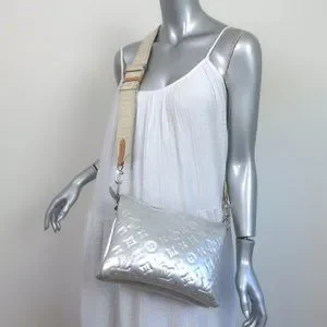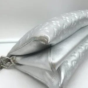 LOUIS VUITTON COUSSIN PM SHOULDER BAG SILVER MONOGRAM EMBOSSED LEATHER CROSSBODY