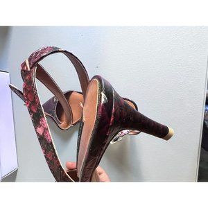 Madden Girl Womens 9 Heels Brown Red Animal Print Point Toe Ankle Strap Shoes