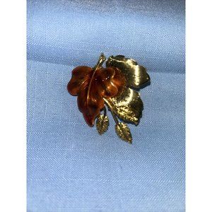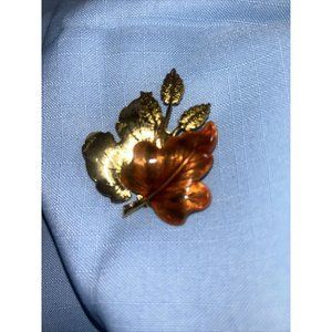 Autumn Leaves Fashion Brooch Jewelry Gold-tone Textured Oak Leaves approx. 2” wide Pin