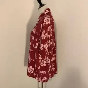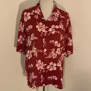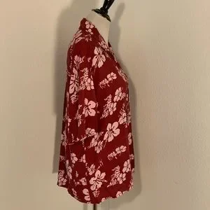 NWOT Hawaiian Pace Burgundy w/Pink Hibiscus Flowers Button Down Short Sleeve Top