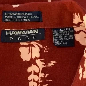 NWOT Hawaiian Pace Red w/Pale Pink Hibiscus Flowers Button Down Short Sleeve Top