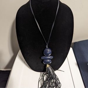 Chicos Navy Blue Avery Tassel Necklace