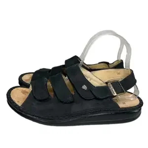 Nwot Finn Comfort Black Nubuck Leather Open Toe Ankle Strap Sandal size 7.5