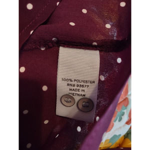 Stylus Wine Plum Polka Dot Button Up Long Sleeve Blouse Size Medium