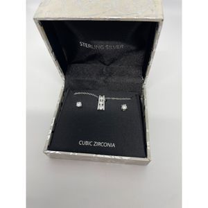 NIB Stirling Silver Cubic Zirconia Necklace and Earrings Set
