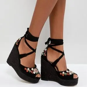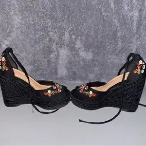 ASOS Shoes TAMIKO Size 4 Embroidered Black 4” High Wedges