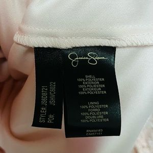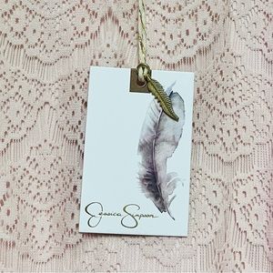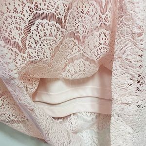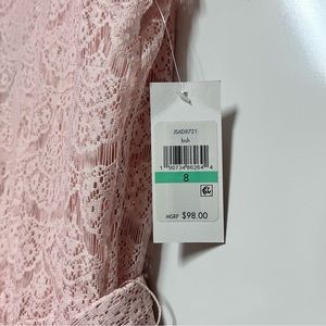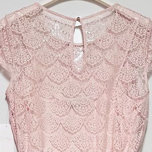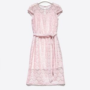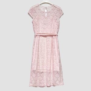 Jessica Simpson Lace Midi Dress Size 8 Blush Pink Scalloped Chain Collar Belted