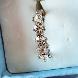 New women's 5 crystal CZ round cut stones in 925 sterling silver setting. Wedding, anniversary, engagement gift.