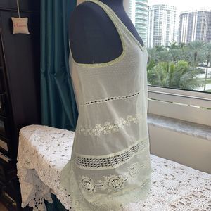 Free People Women's Size S Light Green Tank Top Lace Crochet. It can be wear as a tank top or as a lingerie Minor signs of wear Delicate green color Lightweight