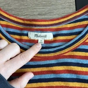 Size Medium, Madewell Stockport Stripe Perfect Vintage T-Shirt in Etruscan Clay. No stains or damage. The material of this shirt is very thin, soft, and has some stretch to it. This was a well loved shirt, but still has a lot of life left in it and no obvious damage. Smoke & pet free home.