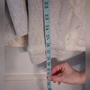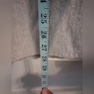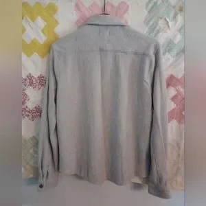 Grey and white herringbone pattern, 60% cotton, 40% recycled polyester. Pre-owned, gently used. Nice and warm.