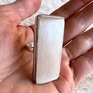 925 MASSIVE Raw Selenite Crystal Charge Ring 9