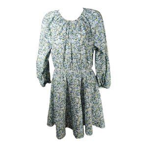 This J.Crew mini sundress is perfect for any occasion, featuring a crew neckline and button closure. Made of 100% cotton, with a multicolor floral pattern and elastic waist for added comfort. The dress length is 33 inches and has long balloon sleeves. It is unlined and can be machine washed. The smocked waist gives it a flattering fit, and it is available in size M. Ideal for spring and summer, this dress can be worn for travel, casual outings, or workwear. It is not a vintage item and cannot be personalized. This dress is a must-have for any fashion savvy woman. Pit to Pit: 19.5"