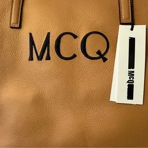 Authentic Logo tan leather tote bag from MCQ by Alexander McQueen. Crafted with high-quality leather giving you that lived-in vintage look.