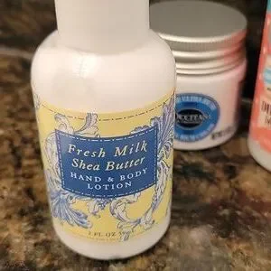 No need to skimp on quality when carrying TSA approved travel size products. All in brand new condition. 1.7oz Ultra Rich Cream by L'Occitane en Provence. 3.4oz The Big Chillout Bath Soak by Dirty Works. 2oz Fresh Milk Shea Butter Hand & Body Lotion by Greenwich Bay Trading Co.