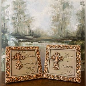 EUC Fold Out Motivational Frames. Bronze Vintage looking. “ Find Faith in everything you do” & “ Love is Patient”
