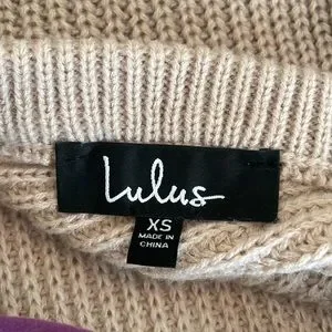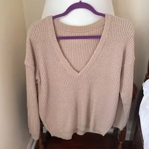 Lulu’s Tan Low Back V-Neck Sweater XS. Only worn a few times. Great condition.