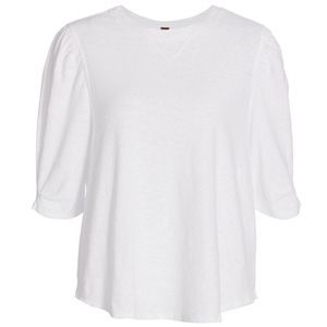 Free people women’s XS white puff sleeve textured T-shirt boxy blouse