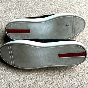 PRADA Black Leather Slip-on Shoes with White Soles Sz 40 US fits between 9-9.5.