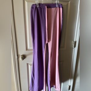 GoodTime USA 2-Piece XL Pink/Lavender Ribbed Collared w/Flared Bottoms Jump Suit