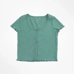 American Eagle Outfitters Ribbed Lettuce Edge Baby Tee Shirt Top