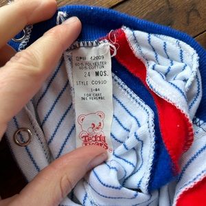 Baseball season is starting up! Put your kiddo in this festive onesie! Vintage Baseball themed onsie, 24 months, good condition, snaps on the back