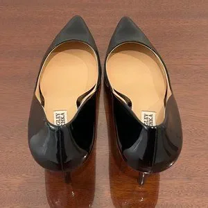Never worn! Classic Badgley Mischka Black Patent Leather Pumps! 100% leather, including sole. Black patent leather with a *very* subtle sparkle in the black!! Perfect for all occasions! Original box included along with an extra pair of heel tips and dust bag.