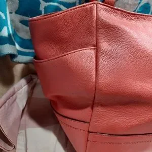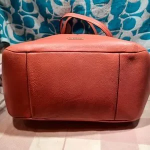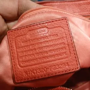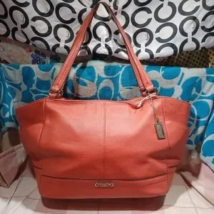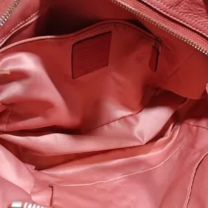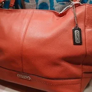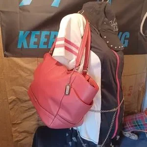 coach all leather Carrie, in EUC, 12 in long, 9 in tall, zip to close, all silver hardware, outside pockets both ends,color is a coral or peach color from a smoke free home