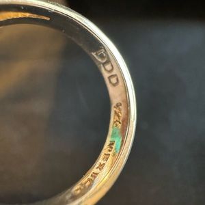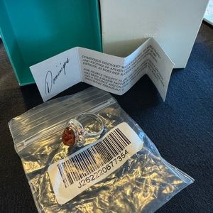 Brand new Dominque Dinouart designed Mexico Sterling Silver hammered Etruscan Concho Ladies Dome Bold Ring. Amber gemstone. Size 7. Inside stamped with “Mexico”, “925”, “DDD”. Never worn. Comes with ziplock bag, information card by DDD, QVC original box. This was a gift.