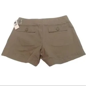 Gap Jeans khaki green shorts. New with tags. Side and back pockets with zip front and drawstring waist. Waist to hem measures 12 1/2 inches long. Tagged size 6.