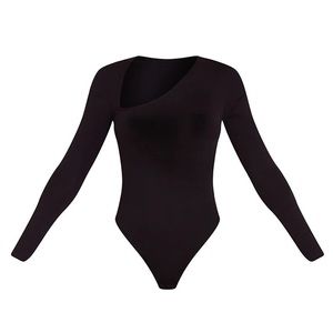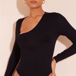 Pretty Little Thing Black Asymmetrical Jersey Thong Bodysuit