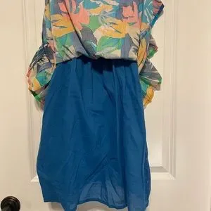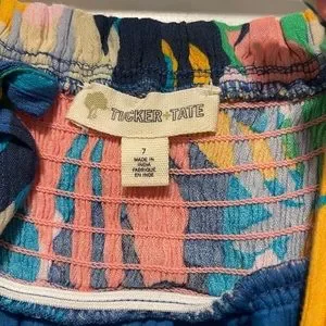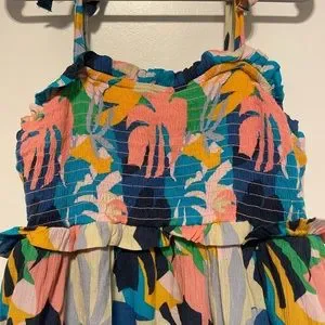 Tropical print linen dress by Tucker and Tate. Touched top with spaghetti straps and linen lining. Great condition, only worn once.