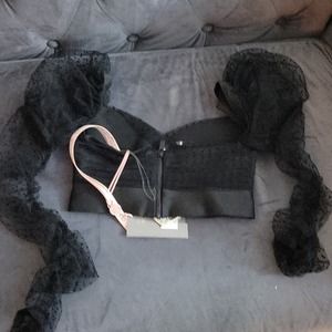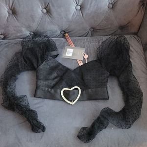 NWT House of CB long sleeve heart top. Size small. Beautiful sleeve details. Heart buckle in middle covered in rhinestones. Cropped fit.