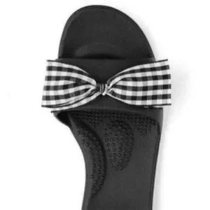 The Madison sandal is adorned with a preppy and gingham bow Plus, the extra durable, one-piece construction makes this slide stand out from the ordinary.