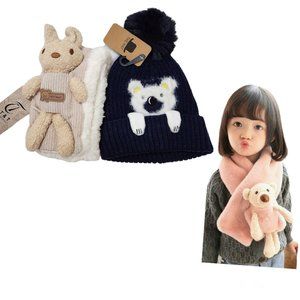 2PCS Toddler Baby Girls/boy Cartoon Winter Warm Knitted Cap+Scarf Keep Warm Set, the Rabbit can be detach from the scarf.NWT #Unisex