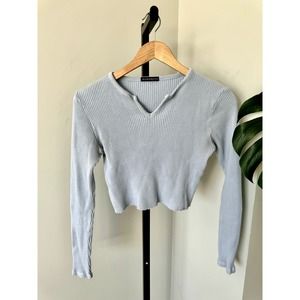 Brandy Melville Ribbed Blue Cropped Sweater